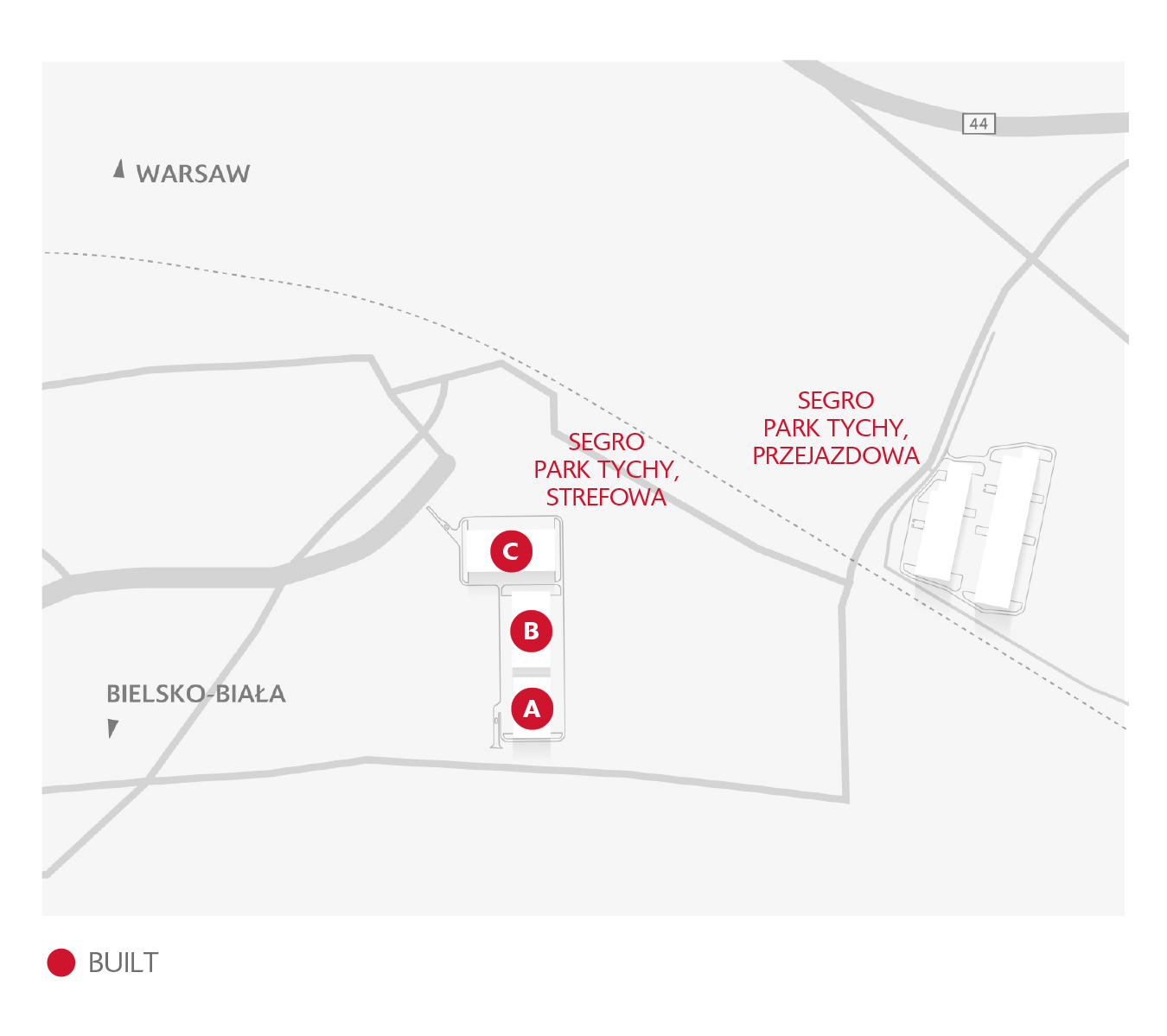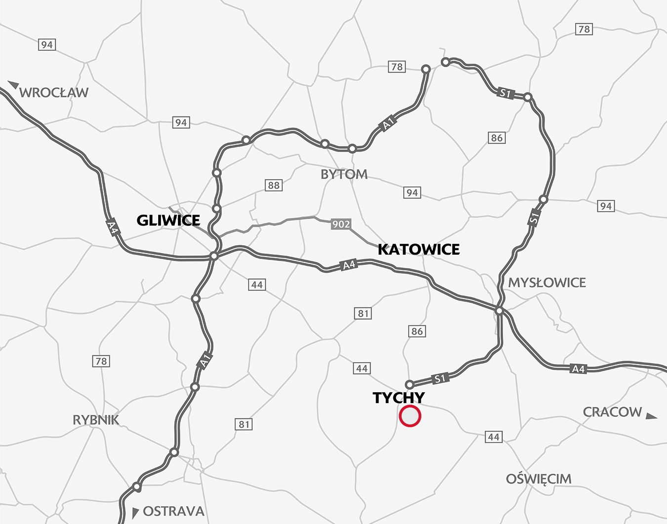 The park is located in the industrial zone in Tychy, 6 km from the city center. The location enables convenient communication with both the Silesian agglomeration and the rest of the country.