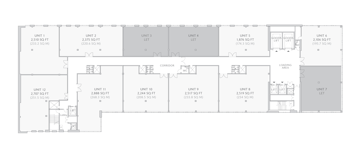 The flexible industrial units range from c.2,000 sq ft units through to larger self-contained single floors of c.32,000 sq ft, and are available across multiple floors with full fit-out options.