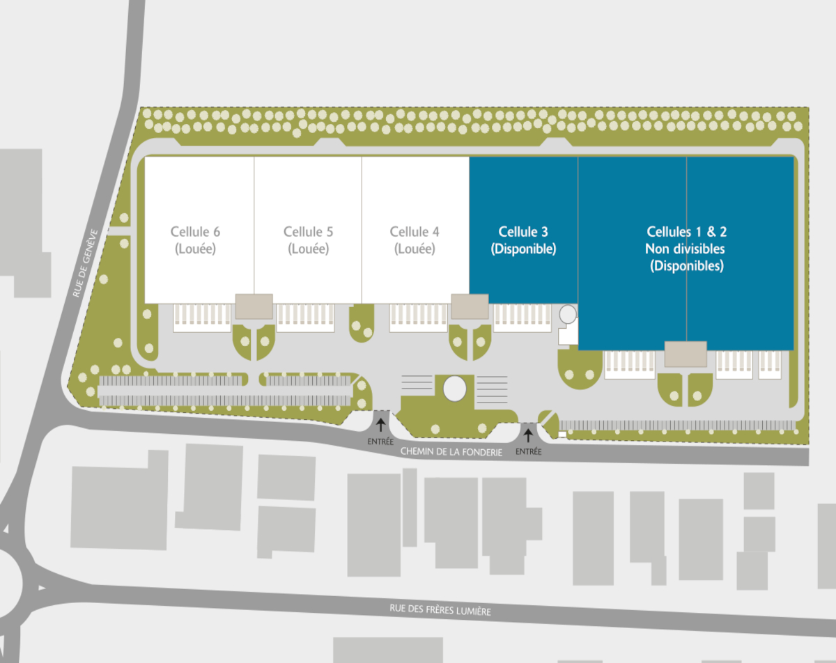 Le SEGRO Logistics Centre Genas est un bâtiment récent divisé en 6 cellules pour une surface totale de 30 182 m². Il est situé au cœur d’un pôle logistique majeure de l’agglomération lyonnaise : la Zone Industrielle Mi-Plaine, la seconde plus grande zone industrielle de France, regroupant sur 1 076 hectares près de 1 400 entreprises opérant dans 70 secteurs d’activités différents et employant 20 000 personnes.