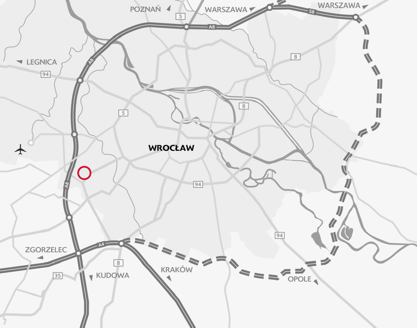 W pobliżu węzła autostrad A4 i A8