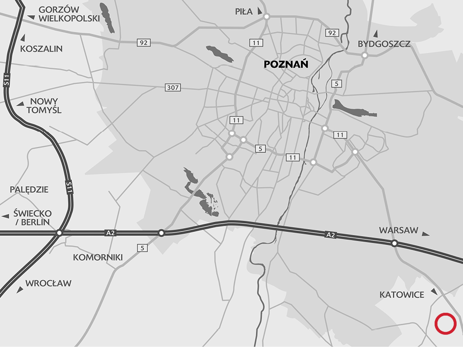 - Bliskość dróg ekspresowych S11 i S5 oraz autostrady A2