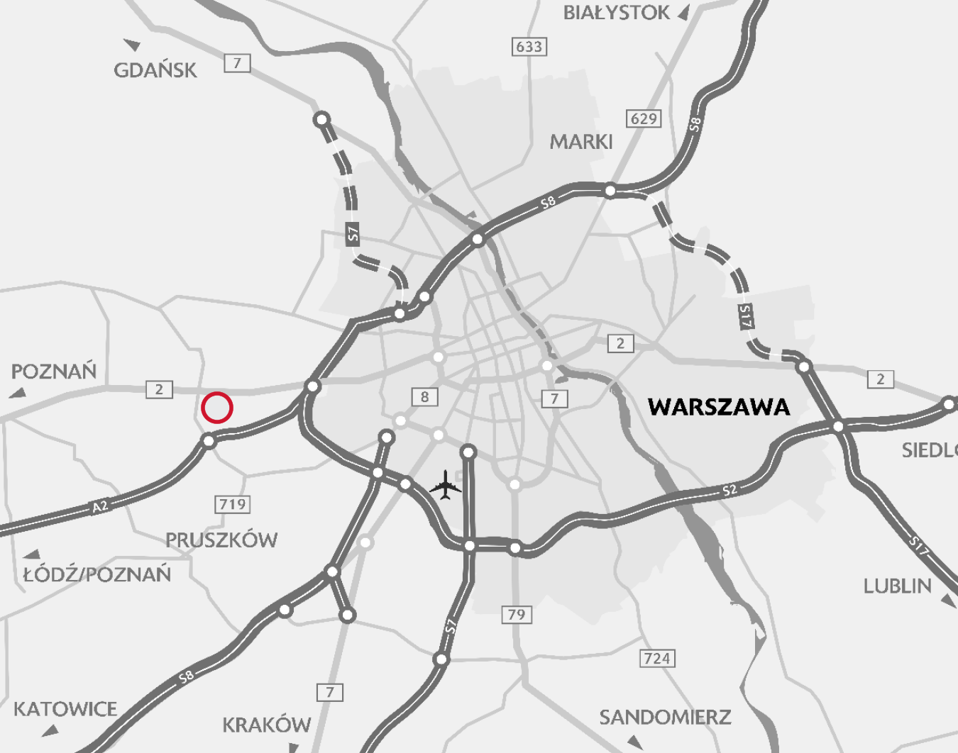 Jednym z najważniejszych atutów Parku jest jego lokalizacja — 16 km na zachód od centrum Warszawy, w bezpośrednim sąsiedztwie autostrady A2, pomiędzy węzłem autostrady A2 a węzłem DK2.