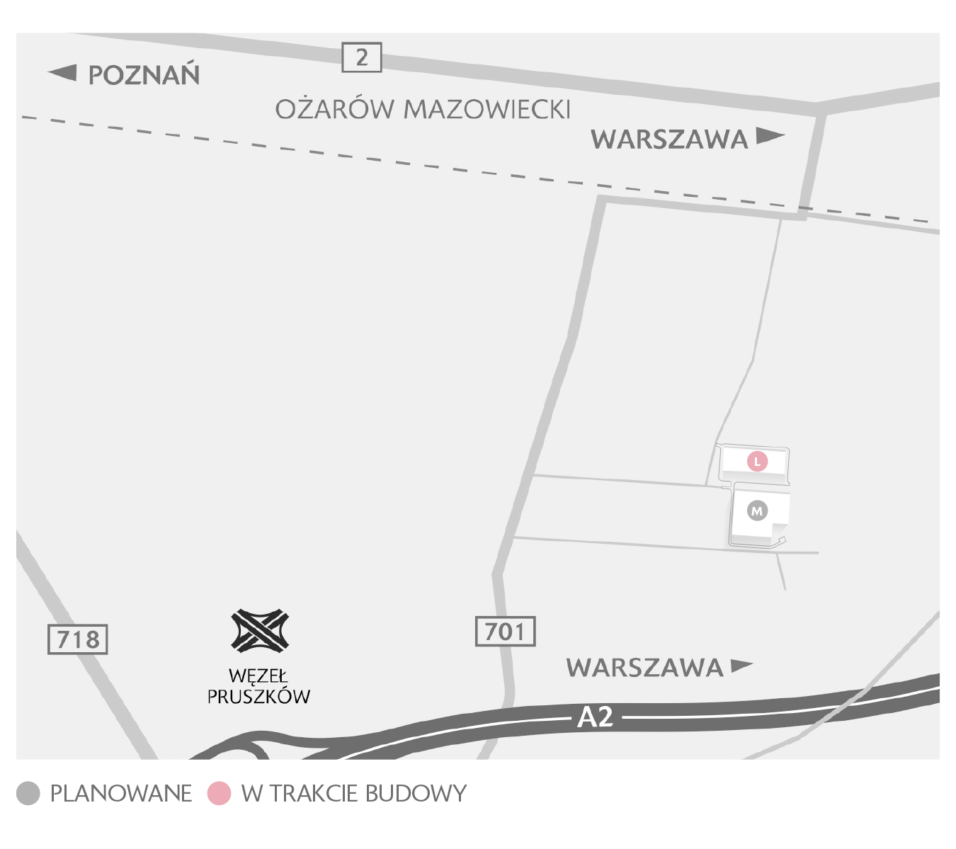 Park magazynowy SEGRO Park Warsaw, Ożarów 2 będzie znajdował się w bezpośrednim sąsiedztwie SEGRO Park Warsaw, Ożarów 1. To doskonała lokalizacji – 16 km na zachód od centrum Warszawy, w bezpośrednim sąsiedztwie autostrady A2, pomiędzy węzłem autostrady A2 a węzłem DK2.